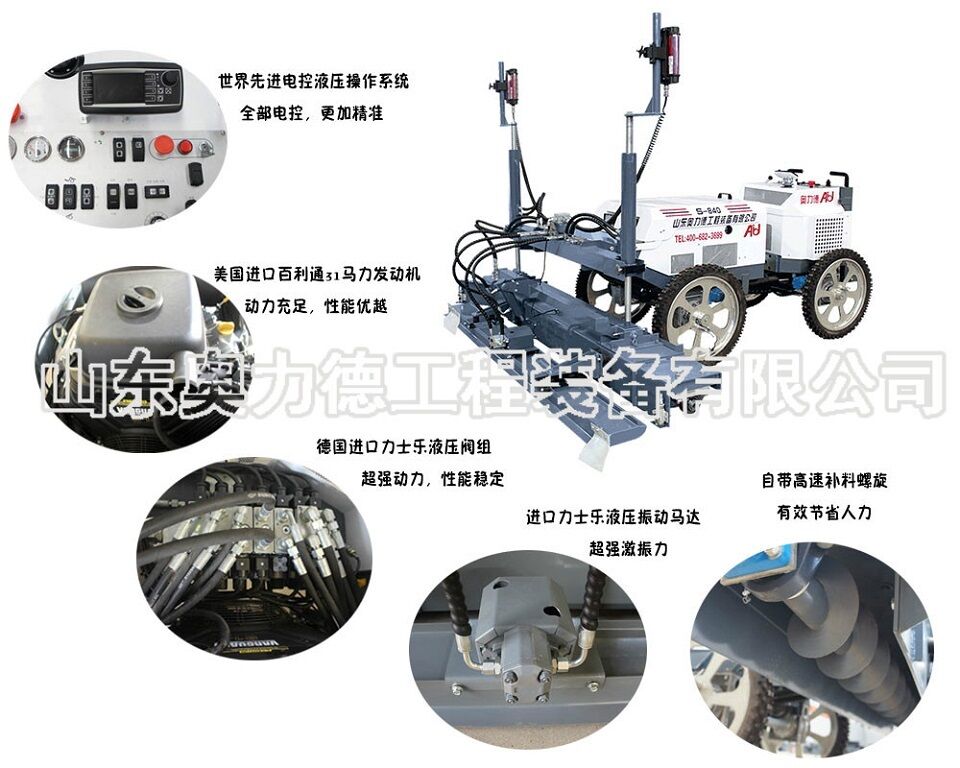 由刮板、振動器、振動板、絞龍等部件組成,將攪拌、找平、震平、振搗,等多道工序整合到一起,由機(jī)器一次性完成。提高效率,節(jié)省人工。