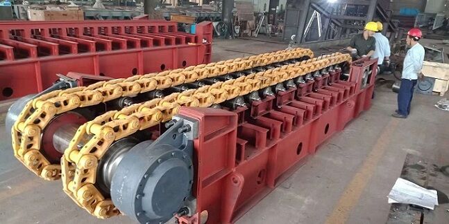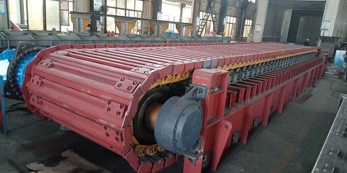 由于板喂機是通過鏈輪、鏈條、鏈板、傳動等一系列全鋼結(jié)構(gòu)的剛性機架將物料拖出庫底的。所有的料倉壓力由板式給料機承擔,避免的由于料倉壓力過大把皮帶秤壓壞現(xiàn)象。