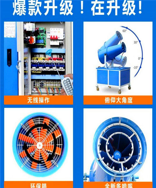 霧炮機(jī)功力強(qiáng)、射程遠(yuǎn)、覆蓋范圍廣、可以實(shí)現(xiàn)精量噴霧;工作效率高、噴霧速度快;對容易引起塵埃的堆場噴水除塵時,噴出的霧粒細(xì)小、與飄起的塵埃接觸時,形成一 種潮濕霧狀體,能快速將塵埃抑制降沉;配套動力靈活,既可用三相380V的市電,也可配套柴油發(fā)電機(jī)組供電;可固定安裝在混凝土澆筑的平臺上,也可配套柴 油發(fā)電機(jī)組供電安裝在運(yùn)輸車輛上;操作靈活,使用安全可靠,遙控和人工控制操作,可隨意控制調(diào)節(jié)水平旋轉(zhuǎn)噴霧角度;耗水量其它抑塵噴灑設(shè)備可節(jié)約 ~(噴槍、灑水機(jī)車),且水霧覆蓋粉塵面積遠(yuǎn)遠(yuǎn)大于其它抑塵噴灑設(shè)備。