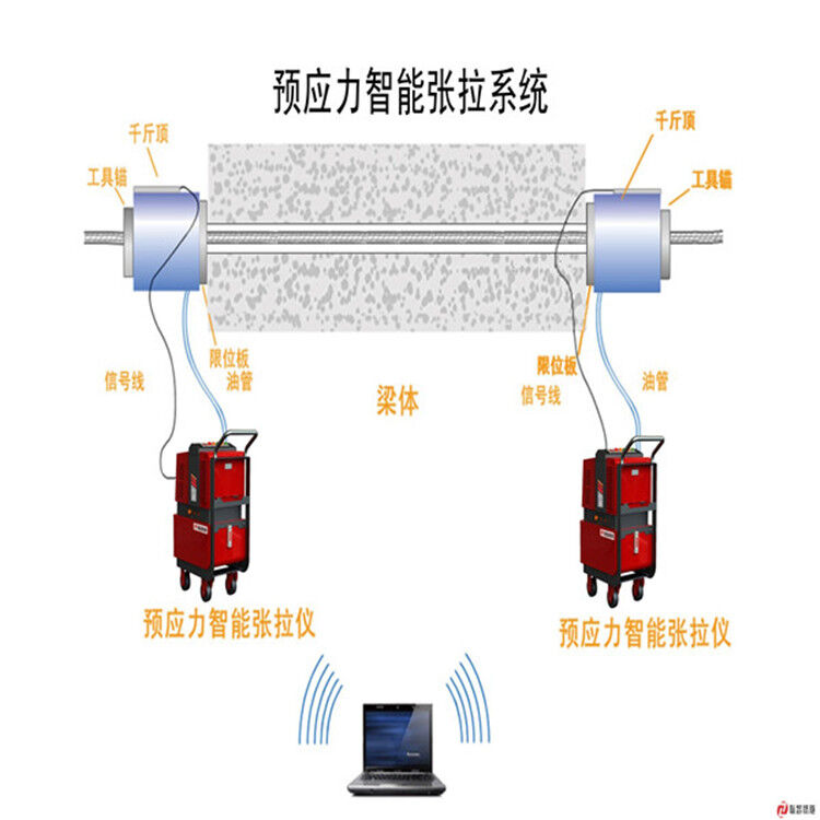 ZL-1000型預(yù)應(yīng)力全自動(dòng)張拉系統(tǒng)主要是為滿足各種公路、橋梁等工程建設(shè)中預(yù)應(yīng)力梁張拉而設(shè)計(jì)的。系統(tǒng)由2臺千斤頂,2臺電動(dòng)液壓站、2個(gè)高精度壓力傳感器、2個(gè)高精度位移傳感器、變頻器、伺服控制器、微機(jī)、無線數(shù)據(jù)傳輸系統(tǒng)等組成,可同時(shí)控制2臺千斤頂同步工作,構(gòu)成平衡的張拉。由計(jì)算機(jī)預(yù)設(shè)張力工藝,一鍵操作實(shí)現(xiàn)張拉過程的自動(dòng)化控制,伸長值顯示,張拉數(shù)據(jù)實(shí)時(shí)曲線采集及校核報(bào)警,張拉結(jié)果記錄存儲、無線數(shù)據(jù)傳輸以及網(wǎng)絡(luò)傳輸,信息化管理。