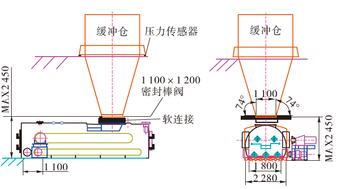 圖2 料封倉+全密閉板式喂料機(jī)結(jié)構(gòu)示意