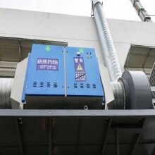 惡臭氣體利用排風(fēng)設(shè)備輸入到UV光解凈化設(shè)備后,凈化設(shè)備利用特制的高能高臭氧UV紫外線光束照射惡臭氣體和TiO2光催化,催化裂解惡臭氣體,進(jìn)行協(xié)同分解氧化反應(yīng),使惡臭氣體物質(zhì)其降解化成低分子化合物、水和二氧化碳,再通過排風(fēng)管道排出室外。