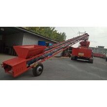 新型履帶移動式堆料機,以皮帶輸送機的物料輸送功能為主體,皮帶輸送機的兩端分別設置有傳統(tǒng)的入料裝置和出料裝置。其特征在于,還包括履帶底盤和行走輪,皮帶輸送機的一端通過轉盤機構與履帶底盤連接,皮帶輸送機的另一端通過鉸接機構與行走輪連接,整個裝置由液壓馬達驅動履帶行走,動力可采用柴油發(fā)動機或外接電源。