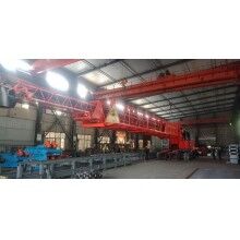 礦山塊狀物料由入料裝置落入皮帶輸送機上。皮帶輸送機由頭部滾筒、尾部滾筒、張緊裝置、上下托輥、改向滾筒等部件組成,其中央設置有桁架,托輥架與桁架剛性連接,托輥與托輥架采用柔性連接,增強了皮帶對不平地面的適應性,抑制了皮帶跑偏情況。桁架的結構針對皮帶輸送機獨特設計,長度可依使用情況隨意定制,針對不同運輸能力的皮帶適應性強,對場地的平整度要求低。桁架與履帶底盤通過轉盤機構連接,履帶底盤上裝有用于驅動的液壓馬達,負責移動式皮帶機的動力輸出,轉盤機構內的主要部件為軸承,實現(xiàn)移動皮帶輸送機的轉向功能。鉸接機構連接桁架與行走輪,本設計中的鉸接機構的主要部件為關節(jié)軸承,它能夠調節(jié)桁架對不平場地起伏度的適應能力,實現(xiàn)桁架在一定范圍內的俯仰動作;行走輪采用了四輪行走機構,承載力強,行走穩(wěn)定;入料裝置與出料裝置局部采用耐磨材料,結構細節(jié)上最大限度的避免物料對設備所造成的磨損。