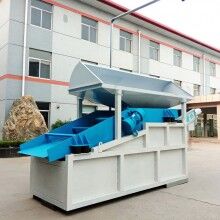 振動(dòng)式砂石分離機(jī)利用振動(dòng)電機(jī)激振作為振動(dòng)源,是物料再篩網(wǎng)上唄拋起,同時(shí)向前直線運(yùn)動(dòng),物料自罐車均勻地進(jìn)入篩分機(jī)的前段,沖洗的同時(shí),通過制定規(guī)格的篩網(wǎng)分出篩上物、篩下物,石子沿振動(dòng)篩方向流入石子儲(chǔ)料池,砂子經(jīng)篩孔漏下,由螺旋輸送機(jī)輸送到砂池。砂石用直線篩采用柔性驅(qū)動(dòng),其偏心塊所產(chǎn)生的激振力、驅(qū)動(dòng)振動(dòng)篩往復(fù)式平行復(fù)擺雙方向運(yùn)動(dòng),使混合料分離,從而達(dá)到對物料進(jìn)行篩選和分級(jí)的目的。