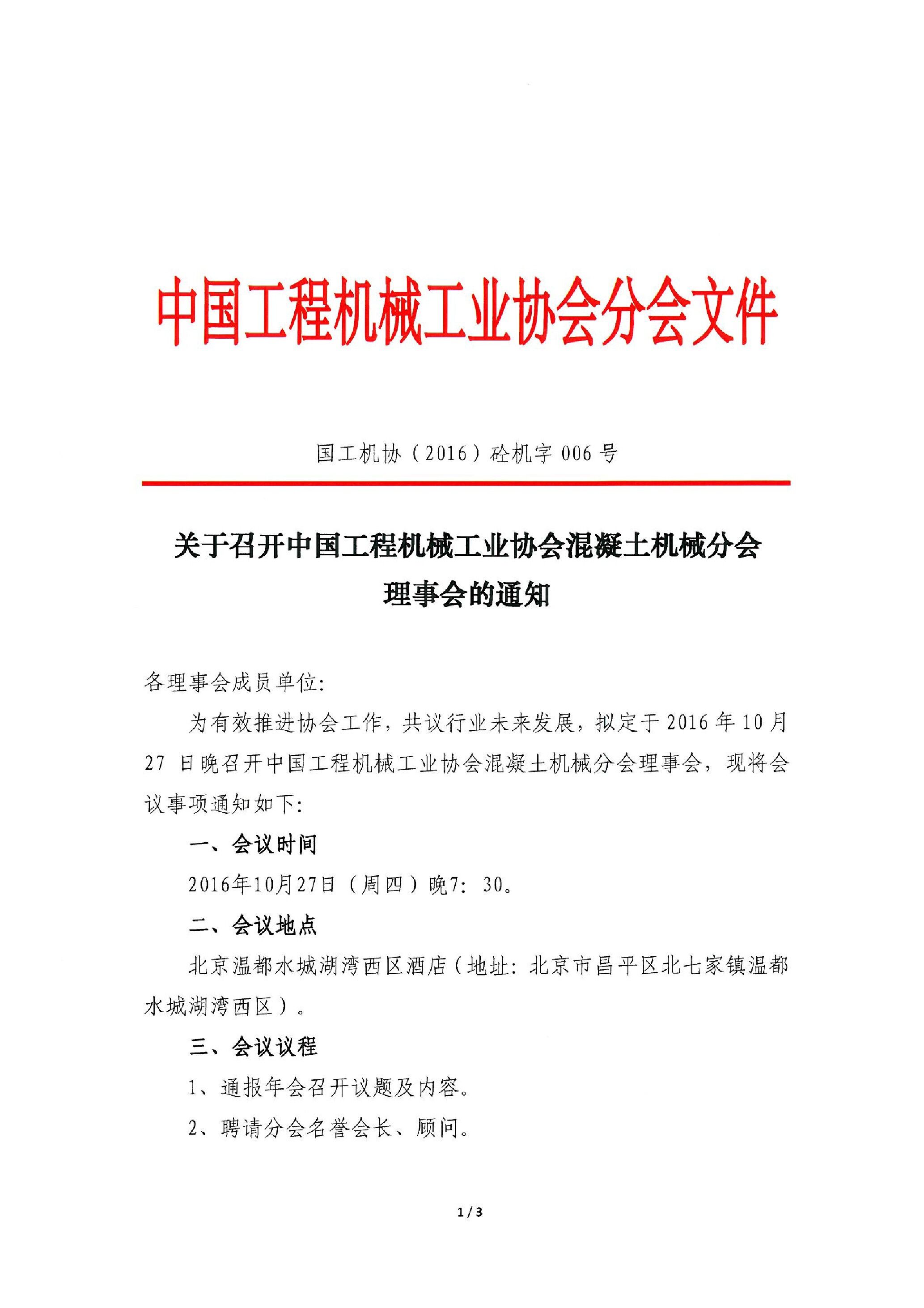 關(guān)于召開中國工程機(jī)械工業(yè)協(xié)會混凝土機(jī)械分會暨中國工程機(jī)械學(xué)會