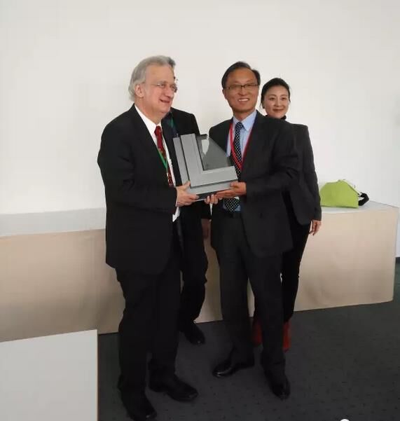 費(fèi)斯特教授與上??私j(luò)蒂材料科技發(fā)展有限公司董事長孫生根合影