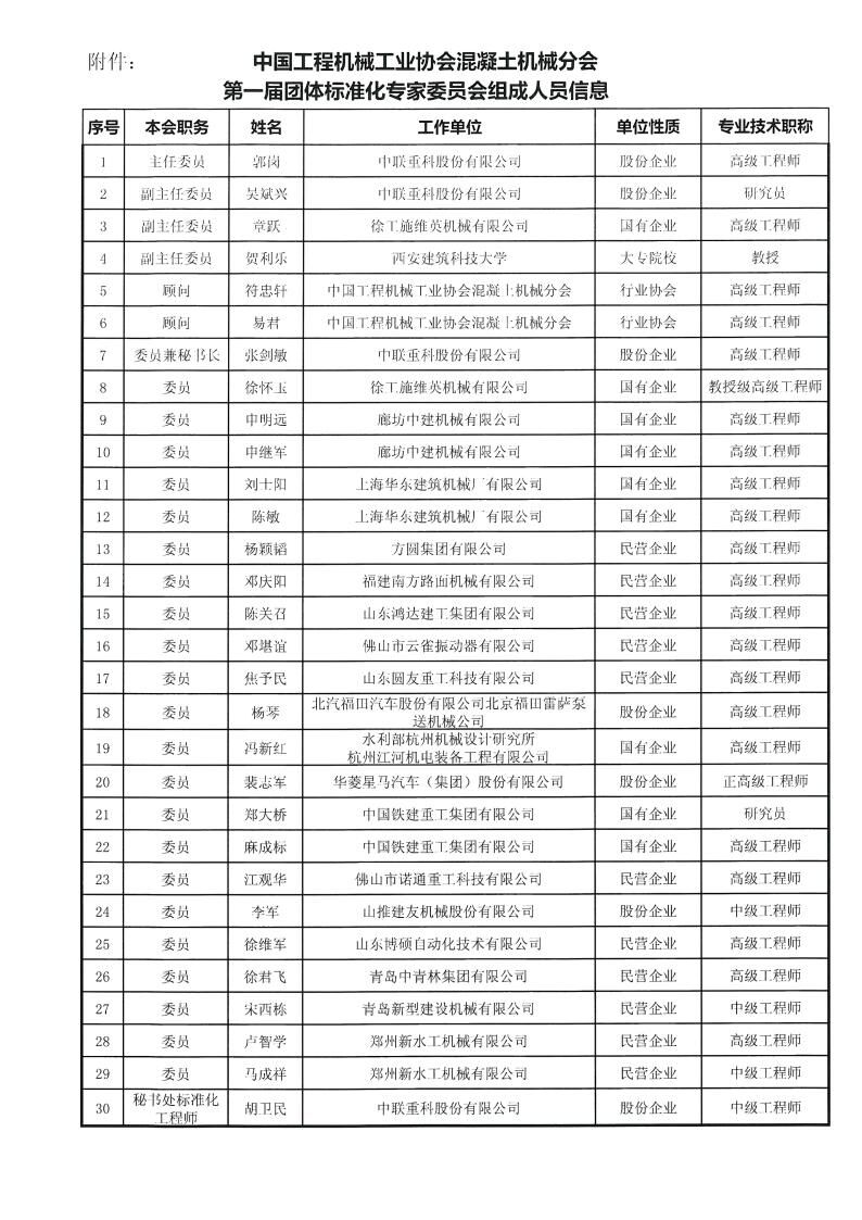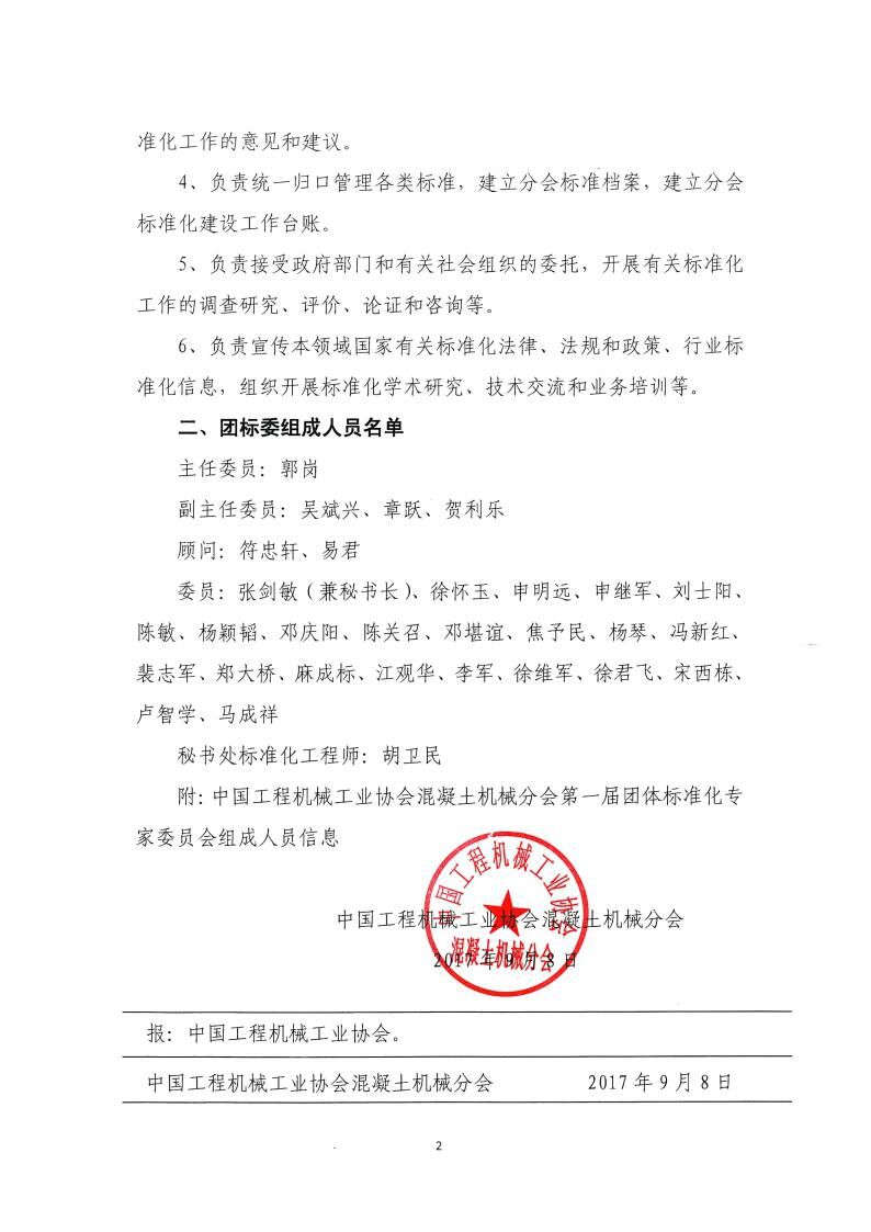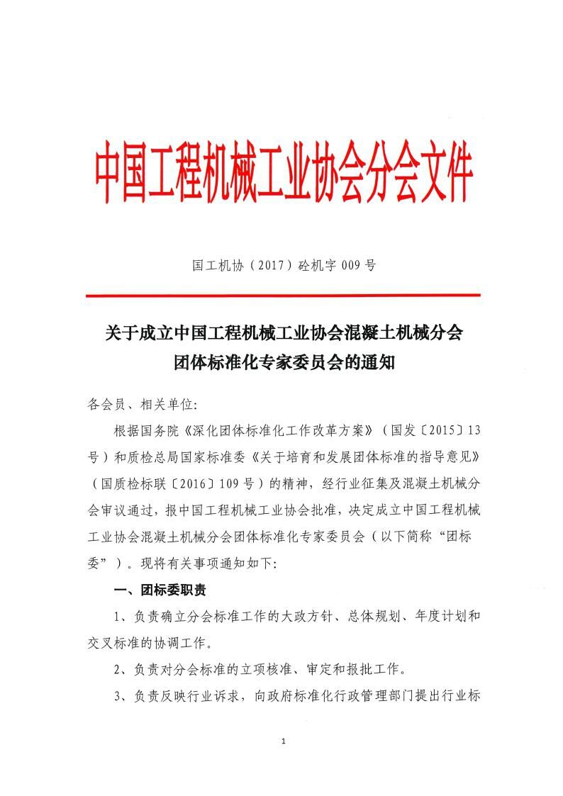 《關(guān)于成立中國工程機械工業(yè)協(xié)會混凝土機械分會團體標準化專家委員會的通知》