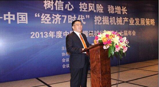 曾光安會長代表主辦方致歡迎詞,他在致辭中簡要介紹了2013年前三季度挖掘機市場銷量情況和當前行業(yè)中存在的運行風險。他指出:中國挖掘機械市場出現(xiàn)回暖勢頭,目前正處于一個高峰后的“煎熬”狀態(tài),長期發(fā)展謹慎樂觀。他希望行業(yè)企業(yè)通過此次年會,企業(yè)能夠正確認識中國經(jīng)濟減速進入“7時代”所帶來的影響,提振走出低谷、克難奮進的信心,共同維護和推動挖掘機市場有序競爭與合作,控制風險,實現(xiàn)全行業(yè)理性和可持續(xù)發(fā)展。